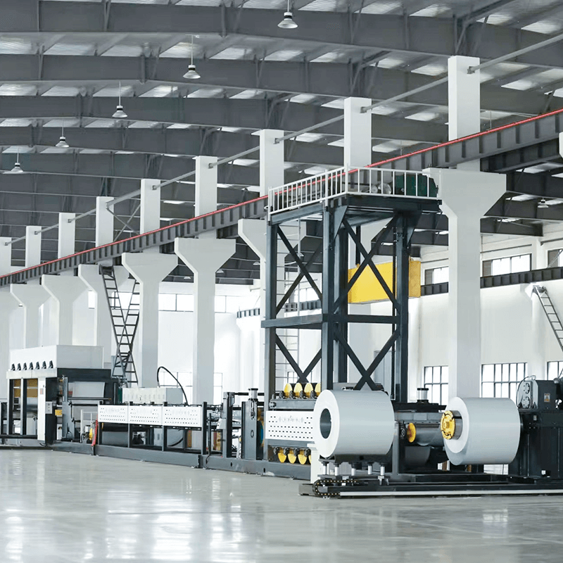 خط إنتاج التصفيح: يطبق هذا الخط عملية الضغط العالي أو درجة الحرارة العالية أو عملية اللصق على صفائح الفولاذ المجلفنة أو الشب الزنك أو الزنك والألومنيوم والمغنيسيوم، مما يؤدي إلى ربط فيلم البوليمر بقوة على السطح. لا تقدم المنتجات الناتجة تشطيبات زخرفية متنوعة فحسب، بل توفر أيضًا مقاومة ممتازة للتآكل والعزل الحراري، مما يجعلها مستخدمة على نطاق واسع في البناء، والأجهزة المنزلية، والديكور.