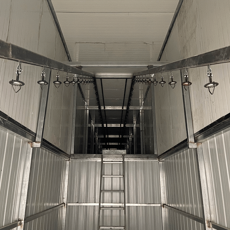 يستخدم نظام الناقل المعلق لزيادة المساحة الرأسية إلى أقصى حد، وهو مثالي لبيئات الإنتاج ذات المساحة الأرضية المحدودة.